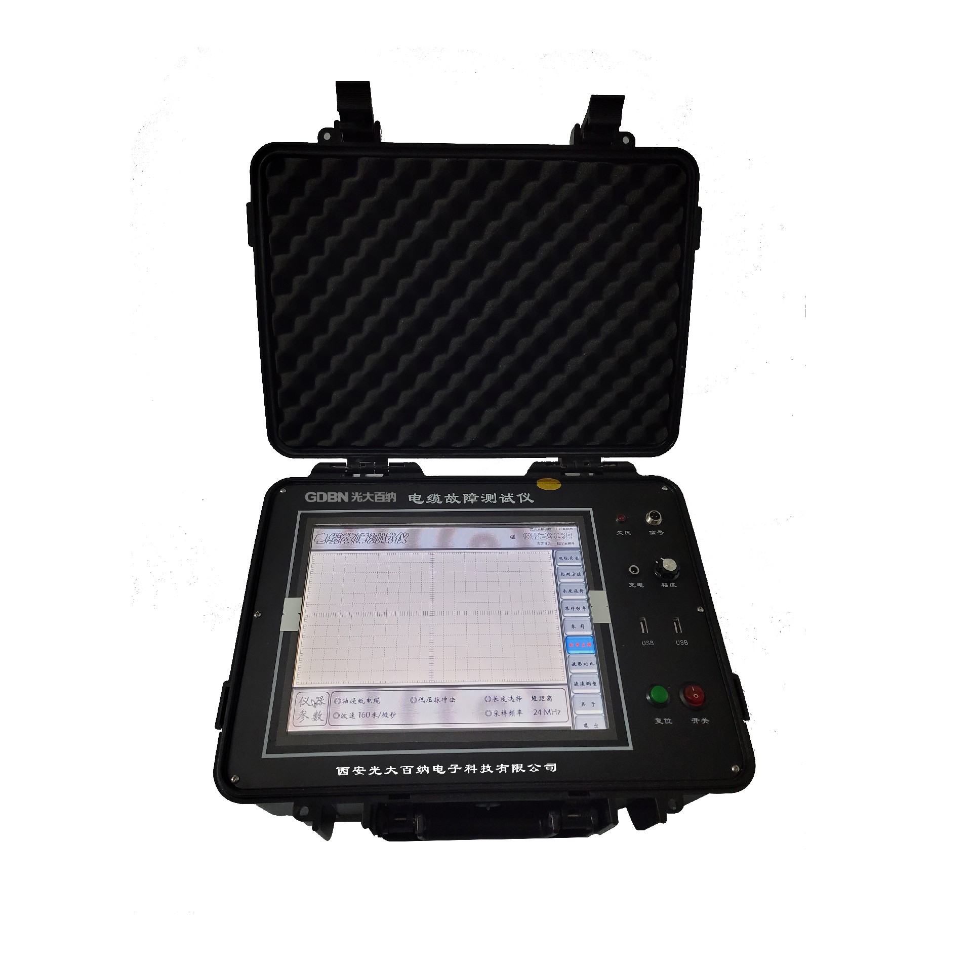 2.電纜故障測(cè)試儀以windows系統(tǒng)為平臺(tái)采用目前國(guó)內(nèi)功耗小、體積小、重量輕,性能穩(wěn)定的嵌入式工業(yè)級(jí)工控機(jī)作為數(shù)據(jù)處理核心部件,確保了整機(jī)性能的可靠性與穩(wěn)定性。
